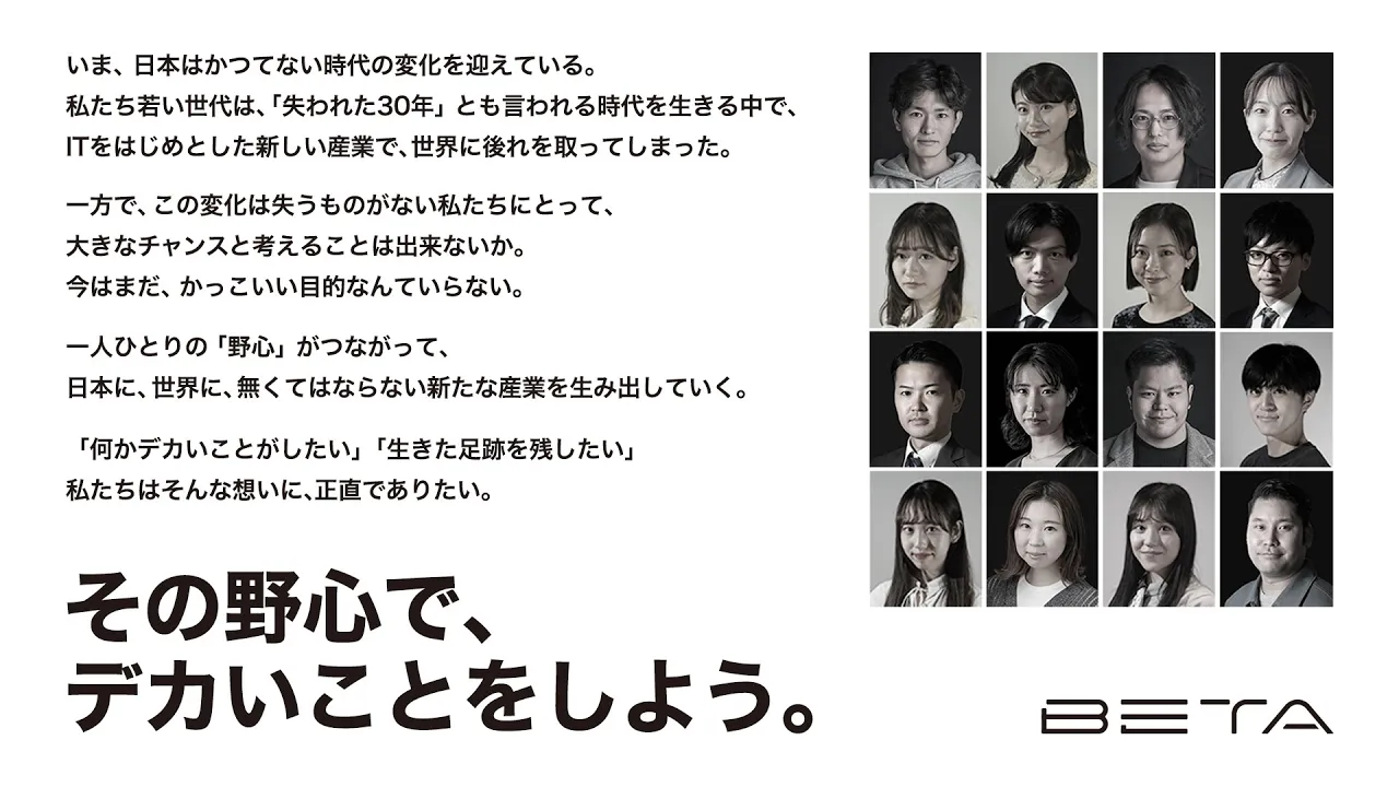 All #会社・事業 #社員密着 #インタビュー Company 『その野心で、デカいことをしよう。』編 BETAコンセプトムービー Interview 【インターン生採用動画】OB・OG対談② 【インターン生採用動画】OB・OG対談① 【インターン生採用動画】 24卒OB(商社入社) 【インターン生採用動画】 23卒OB(SIer入社) 【インターン生採用動画】 24卒OB(テレビ局入社) 【インターン生採用動画】 23卒OB(エンターテイメント企業入社) メディアプロデュースT コンサルタント 渡辺元輝 インタビュー HRDX事業部 コンテンツT コンサルタント 山内翔也 インタビュー メディアプロデュースT プロデューサー 髙瀬美緒 インタビュー メディアプロデュースT コンサルタント 川口瑞樹 インタビュー 該当する条件の動画が見つかりません。別の検索条件をお試しください。