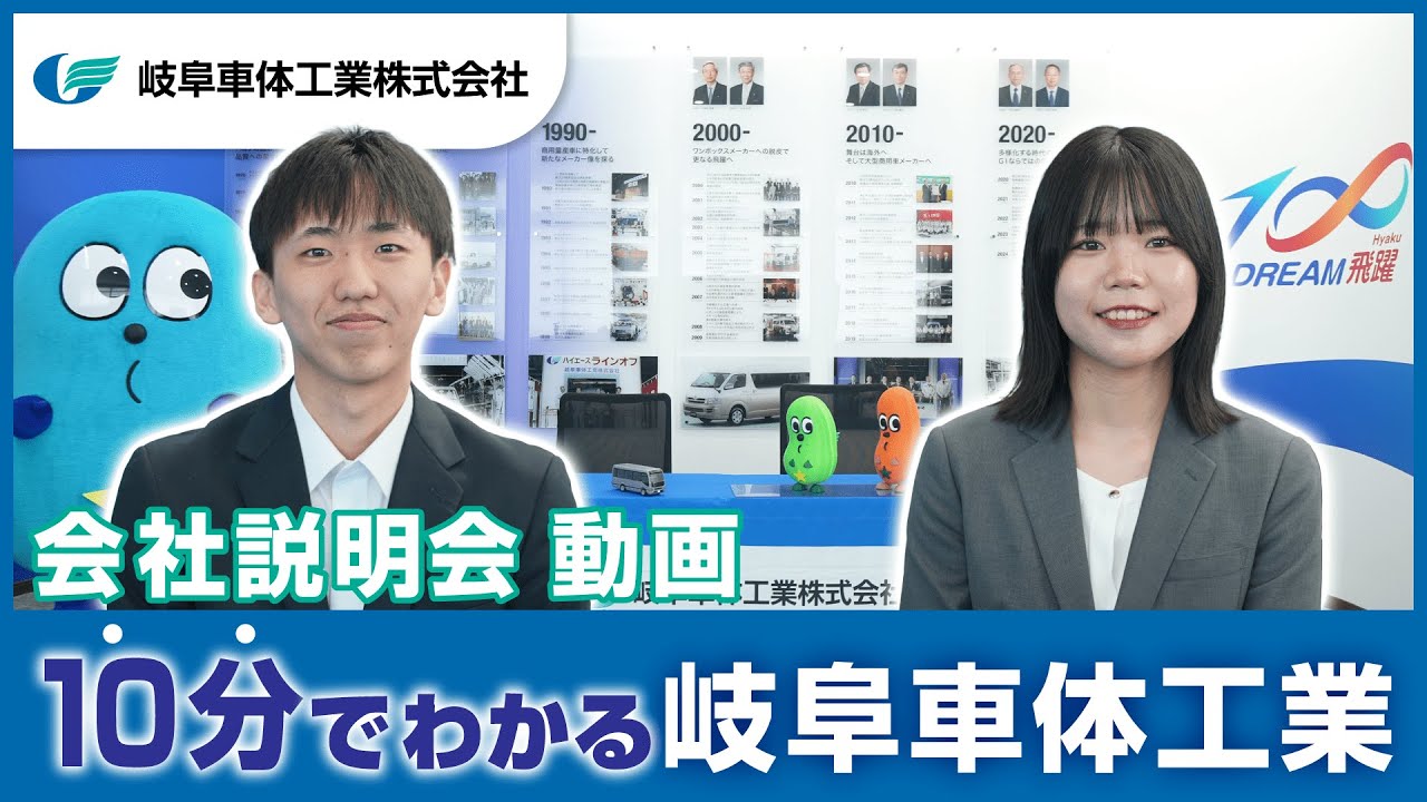 4分でわかる岐阜車体工業 この動画では、岐阜車体工業の基本情報から、製品・サービスの特徴、技術力、働く環境までを、4分でわかりやすく紹介します! 動画を視聴する おすすめ動画 【会社紹介】簡単図解!4分でわかる!「クルマ」をつくるだけじゃない、岐阜車体工業の魅力に迫る! 【事務・技術座談会】実体験から学ぶ!仕事のやりがいや福利厚生がすごい【岐阜車体工業】 【企業研究】転勤なし!高待遇!トヨタの完成車メーカー『岐阜車体工業』が10分でわかる! 【1日密着】AI技術を駆使した技術職!若手社員の裏側【岐阜車体工業】 All #技術系 #事務系 #社風 #福利厚生 #評価制度 #セカンドキャリア #女性活躍 #保護者向け #グローバル #現場潜入 会社を知る 【会社紹介】簡単図解!4分でわかる!「クルマ」をつくるだけじゃない、岐阜車体工業の魅力に迫る! 【企業研究】転勤なし!高待遇!トヨタの完成車メーカー『岐阜車体工業』が10分でわかる! 業務を知る 【1日密着】AI技術を駆使した技術職!若手社員の裏側【岐阜車体工業】 人を知る 【事務・技術座談会】実体験から学ぶ!仕事のやりがいや福利厚生がすごい【岐阜車体工業】 該当する条件の動画が見つかりません。別の検索条件をお試しください。 関連求人情報